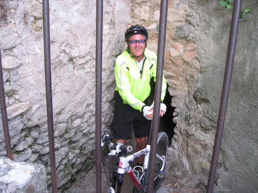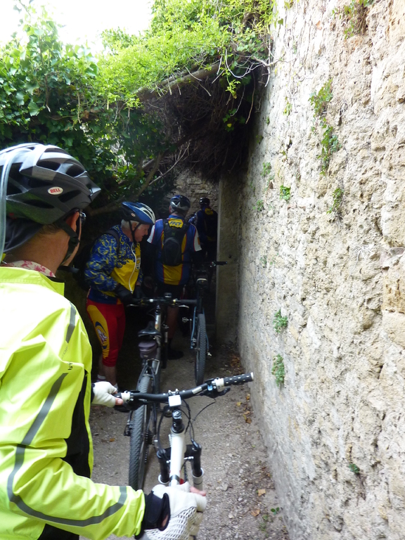 Après nous être copieusement désaltérés, nous avons repris notre parcours sur le chemin des crêtes entre le chateau de Cadenet et Lourmarin pour finir en apothéose dans le village de Lourmarin en essayant de passer dans un "chas d'aiguillle" avec nos vélos( en fait un tunnel très étroit et bas )... ce qui a donné quelques problèmes à certains .. vu leur gabari !!!!