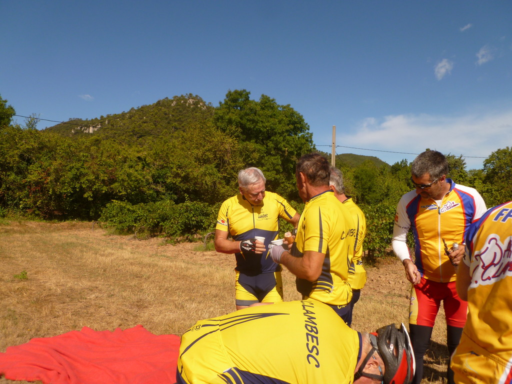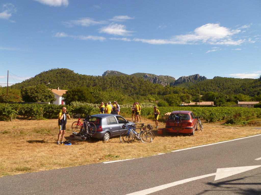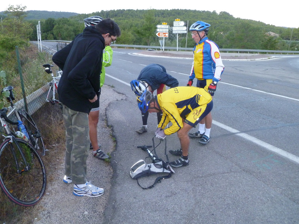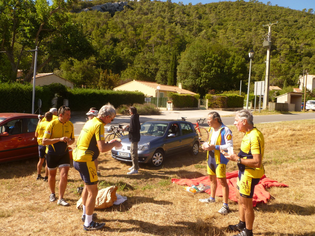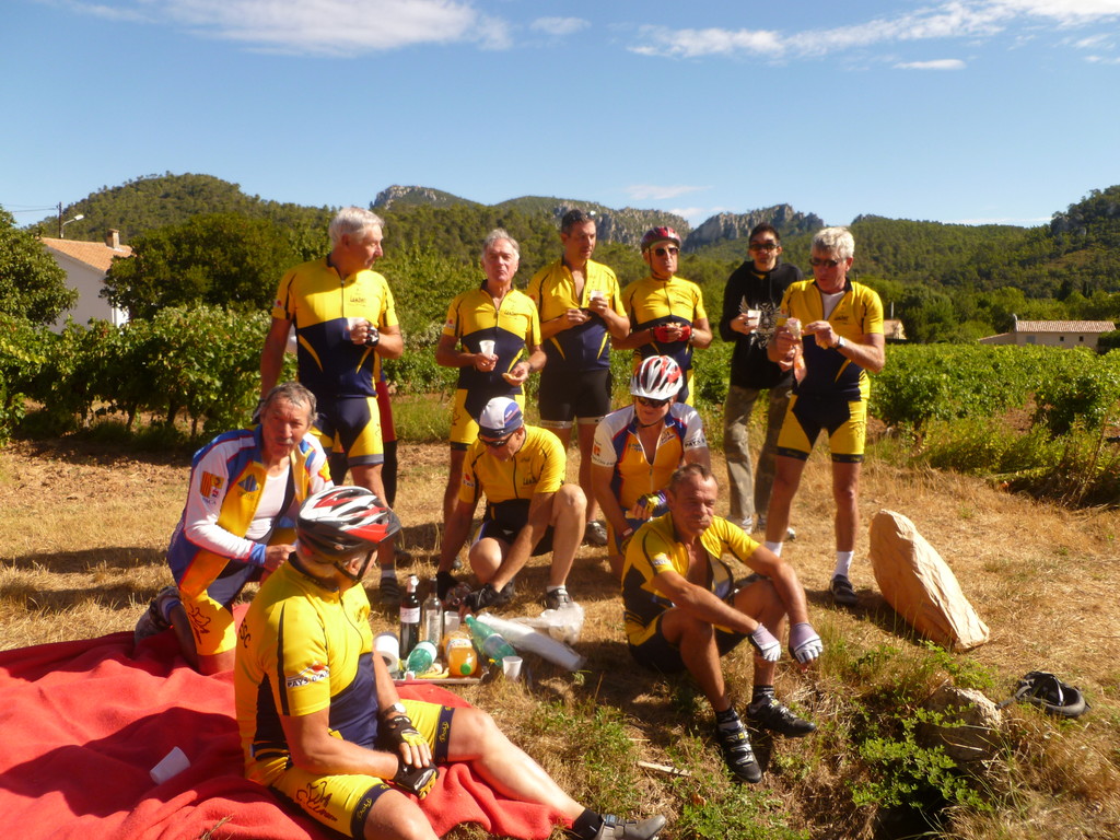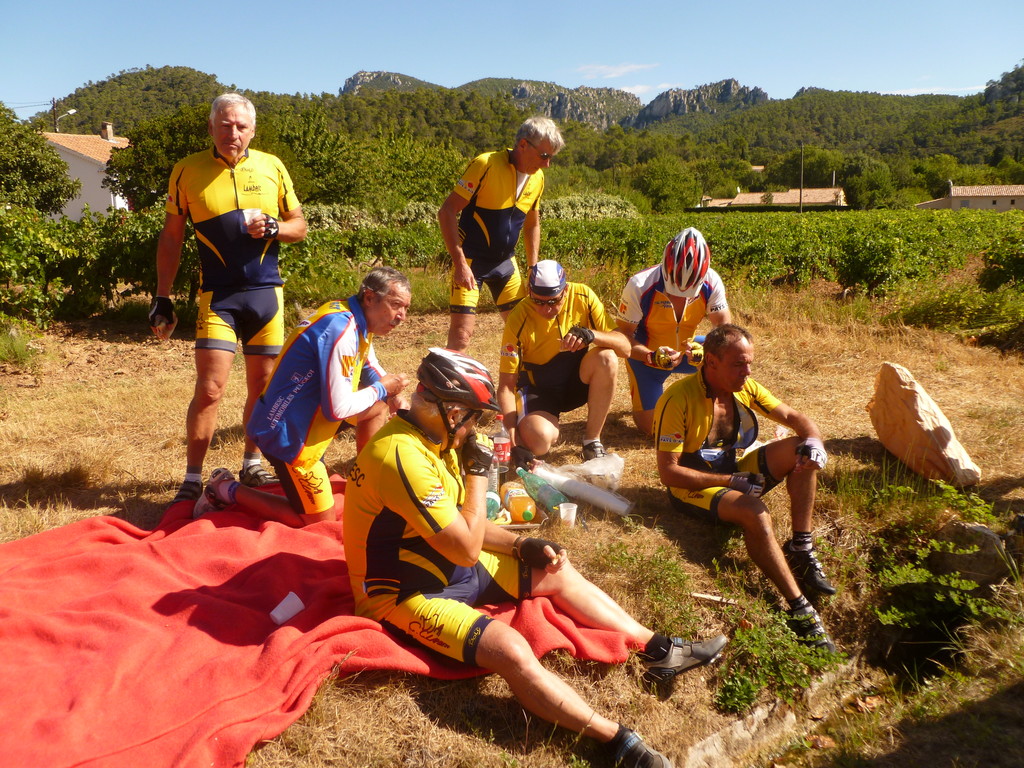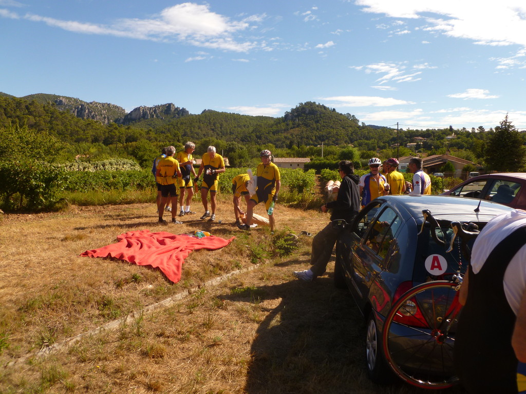 A St Maximin, le groupe toujours uni paraissait être dans les temps, et avant Mazaugues, un arrêt nous rappela que nous changions de pilotes et de cyclos.