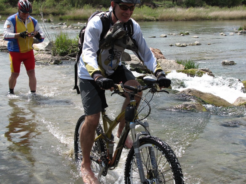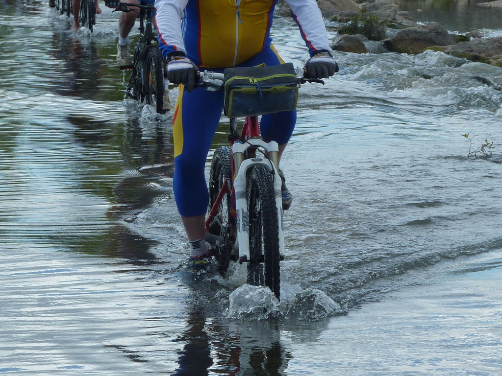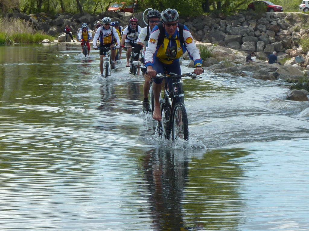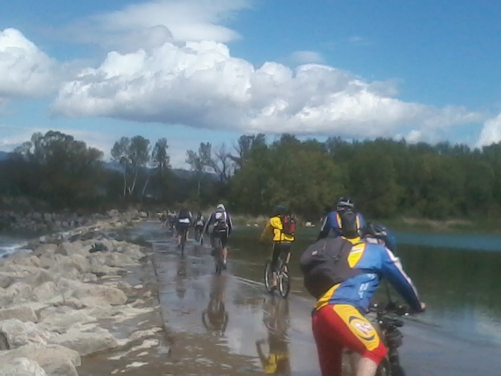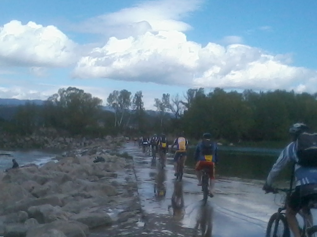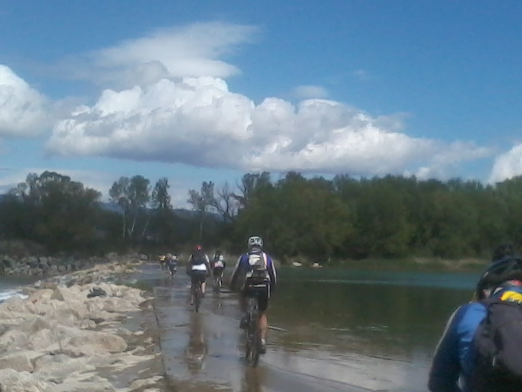Donc après une longue montée sur le plateau, le parcours se composait de nombreux singles , un vrai régal, le long de la Touloubre, le chemin était un peu boueux mais cela ne nous a pas empêché de prendre du plaisir dans de nombreux passages inédits...C'est la première fois que je voyais la Touloubre en crue, elle était vraiment grosse ... à tel point qu'un participant est tombé dedans .. sans mal .. heureusement!!
