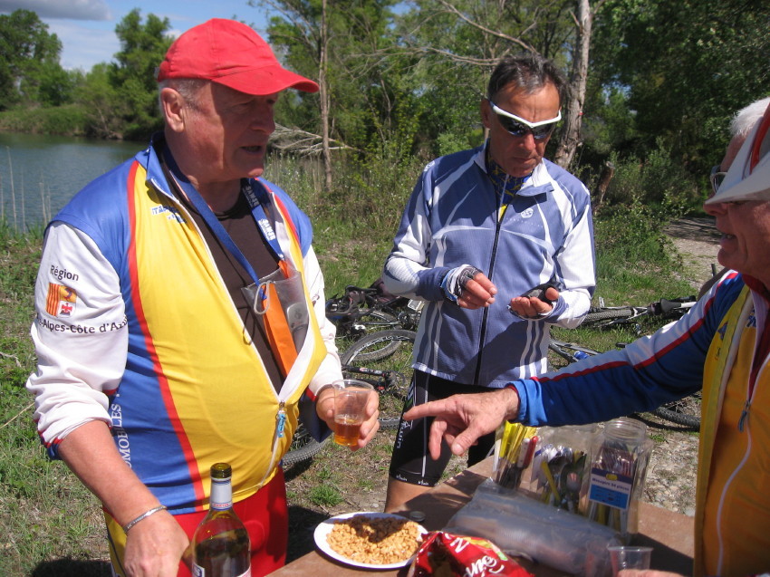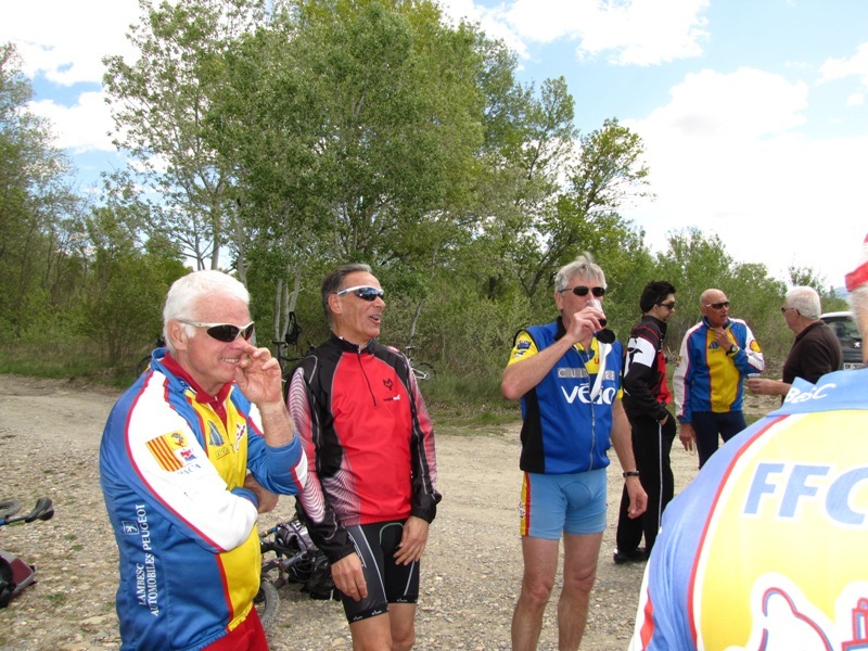 Nos cyclistes arrivaient en force, je veux parler des 3 Rogniens, Jeannot, Jean Marie, Gérard V, puis de Rémi de St Cannat, de François de la Barben, et enfin des Lambescains, Franco, Charley, Gérard H, Gepetto et de moi même, soit 10 sur la grille de départ.