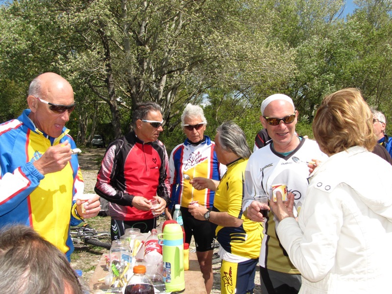 Toute la matinée a été cool ,sans grande difficulté technique ni grand dénivelé, mais avec des sentiers très agréables notamment vers Rognes et St Esteve ....Ensuite après quelques kms de plat, il était temps de rejoindre Marie France et Paul qui, comme d'habitude, s'étaient "mis en 4" pour nous préparer un excellent pique-nique, avec l'apéro, poulet, salade de pâtes, fromage , dessert, café .....et chocolat !!!un vrai festin !!!!!