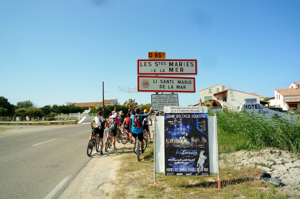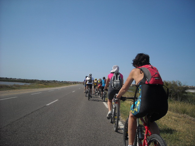 Fort heureusement si j’ose dire, le mistral habituellement cauchemard des cyclos, avec ses 90 kmh annoncés, était au RV pour nous aider dans notre périple, car il nous était plutôt favorable et il nous soutenait moralement et physiquement.