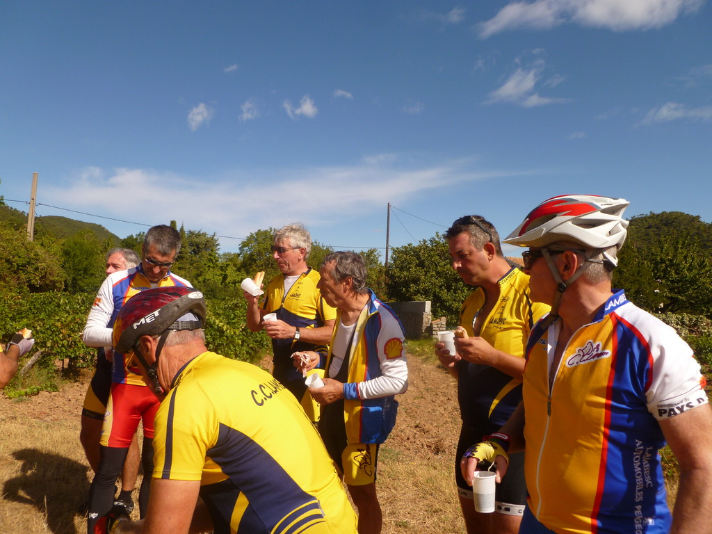 Enfin le casse croûte tant attendu vers 10 h 45 sur un bas côté spacieux au pied d’une vigne de coteaux du var (cépage cinsault ou mourvèdre) juste avant La Roquebrussane.