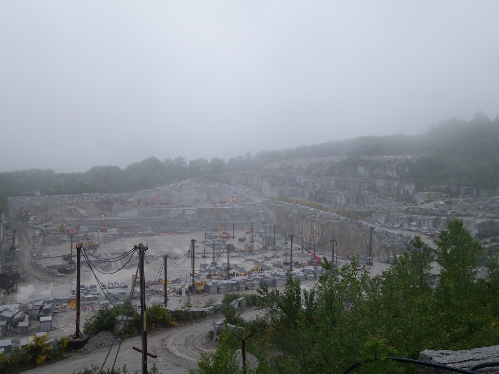 Le lendemain, pluie, grêle, froid, 4°, nous décidons de visiter une carrière de granit à ciel ouvert. Visite passionnante sur l’exploitation du granit, sa transformation pour être commercialisé pour des usages multiples, pierres tombales, sols d’aéroport, bordures de trottoirs pour les granits de moindre qualité.