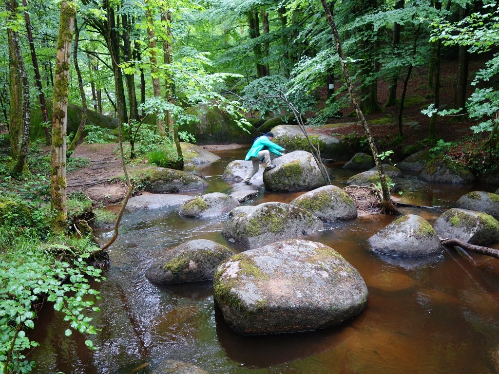 Nous apprécions cette nature sauvage, où l’homme est hyper discret, peu d’habitations, parfois des prairies séparent les bosquets, des lacs se dévoilent au travers des feuillus, et le calme environnant très reposant nous fait oublier l’effort fourni sur des dénivelés parfois sévères, ou qui n’en finissent jamais.