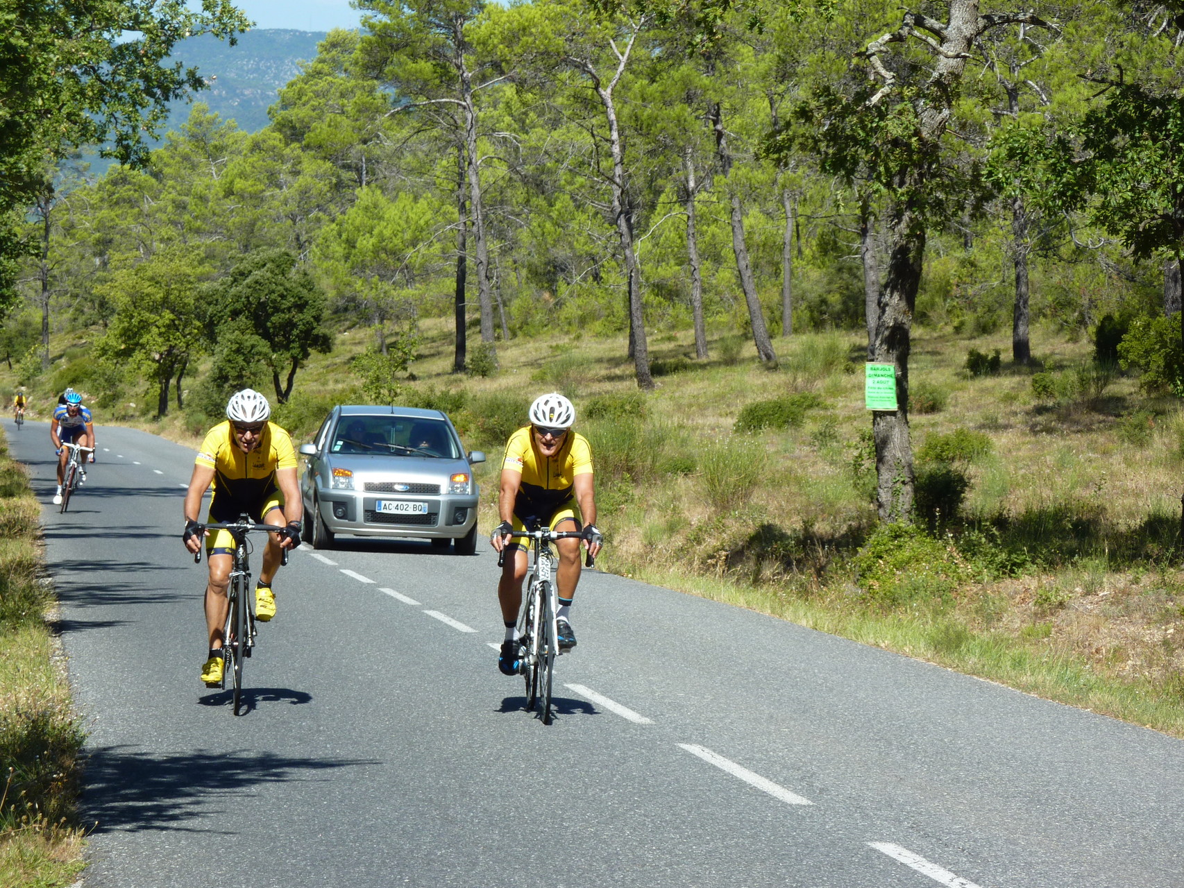 Nous roulons sur Anglès sur des routes bien entretenues, traversant des forêts de chênes et de pins hauts et puissants, rarement dérangés par quelques voitures, et nous nous attendions à surprendre parfois une biche ou un chevreuil, mais notre bavardage ambiant a peut être dérangé ces derniers.