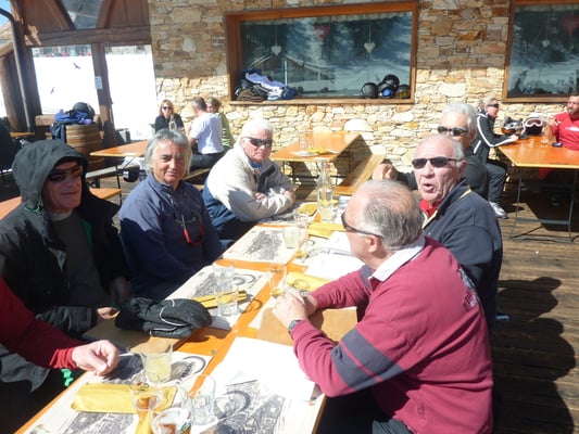 Le ski : mardi le temps est couvert et neigeux mais mercredi et jeudi nous avons eu soleil et ciel bleu. La neige était au rendez-vous. Montgenévre est une belle station avec des pistes bien entretenues, bien ensoleillées avec la possibilité de passer en Italie et de skier sur les monts de la Luna. Le groupe était homogène, à part moi qui avait mal au dos et qui n’était pas trop en forme. Mes compagnons se sont éclatés sous la conduite d’un Claude qui nous a servi de guide, et de plus sans GPS. Mimi et Pierre étaient les plus rapides, Antoine le plus distrait ce qui lui a valu quelques chutes, Alain fonçait tout droit et bousculait les obstacles, avec Francis et Jean Claude nous skions plus cool en admirant le paysage. Jeudi nous avons déjeuné en Italie, des pates bien sûr, mais pas de grappa.