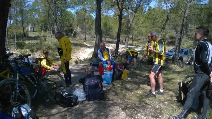 Claude, Alain, Michel B, Christian, Dany, Bernard L, Roland C, Antoine et moi sommes inscrits en VTT