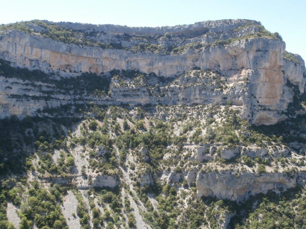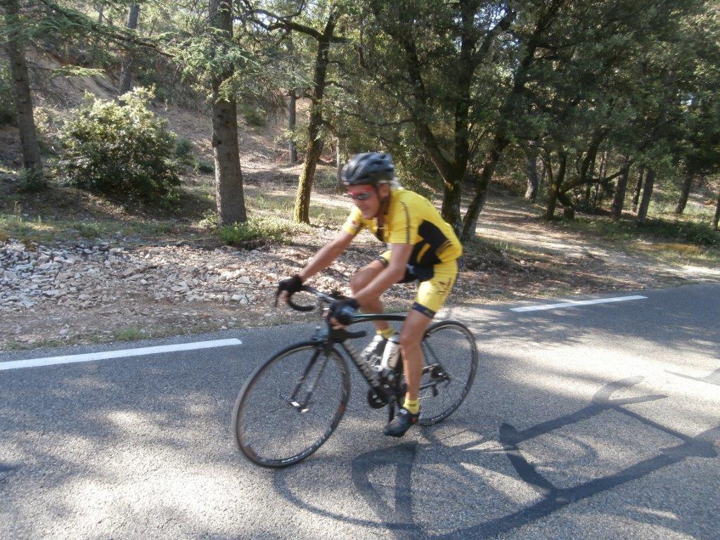 La montée du col de Murs s’effectue sans difficultés groupé sur 10 km à 5/6% (Jeannot nous indique la pente ). Descente sur la D 4 passant à Murs puis direction les falaises de Lioux,ou sa monte à nouveau en direction de Sault, mais nous redescendonsrapidement sur une petite route direction Roussillon que nous éviterons car l’heure tourne il fait 15 degrés il est 13h30