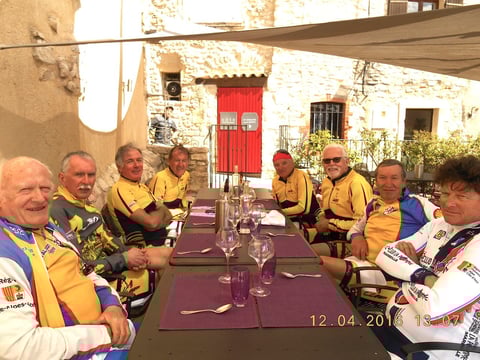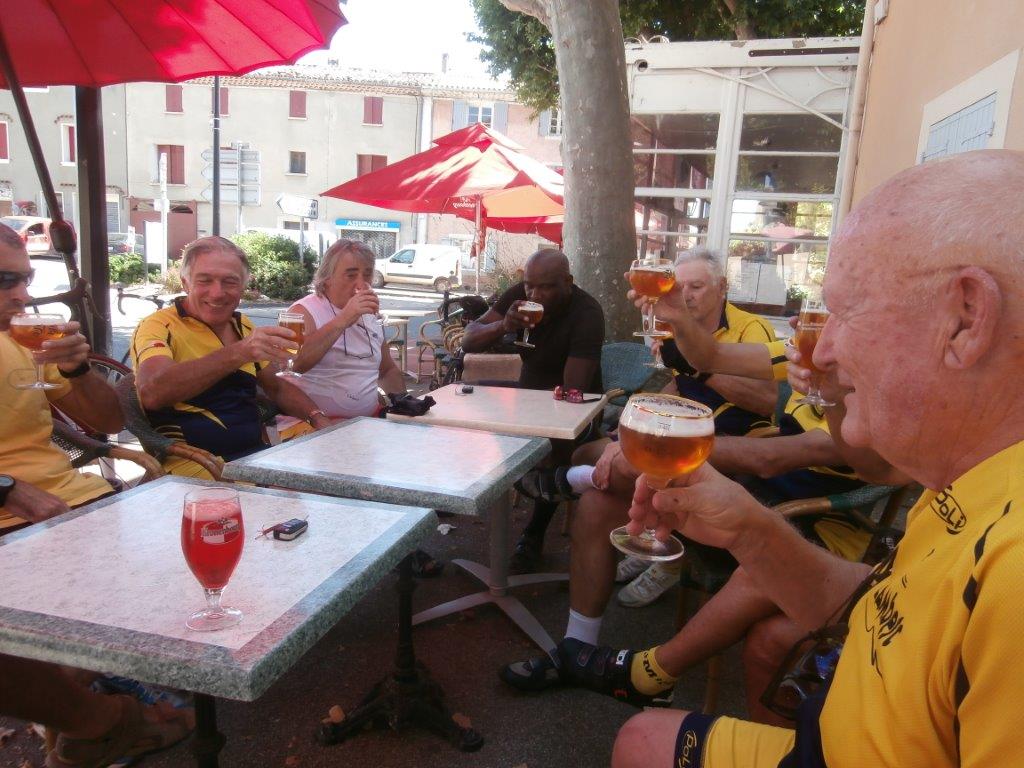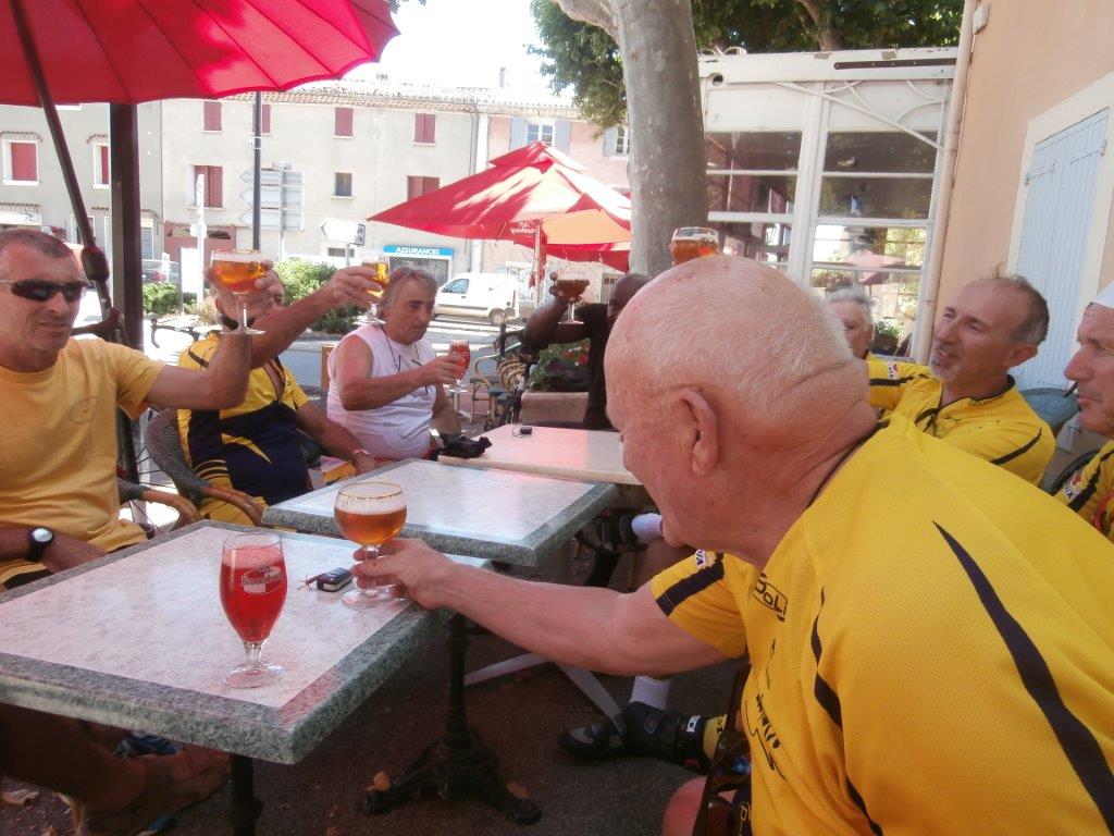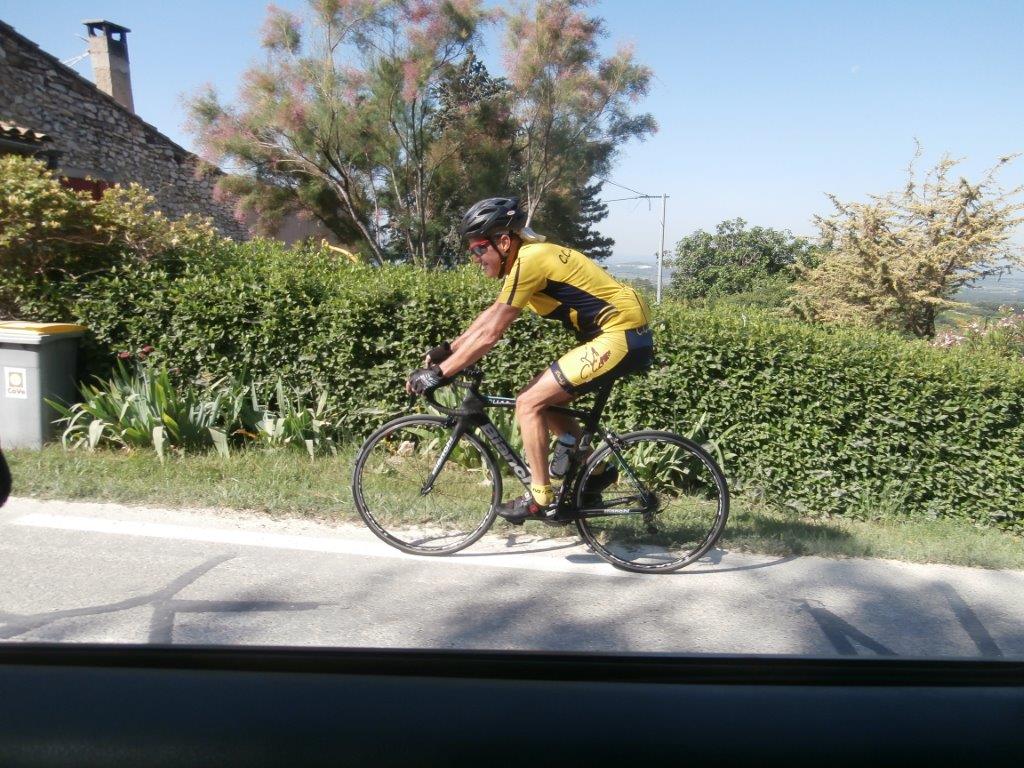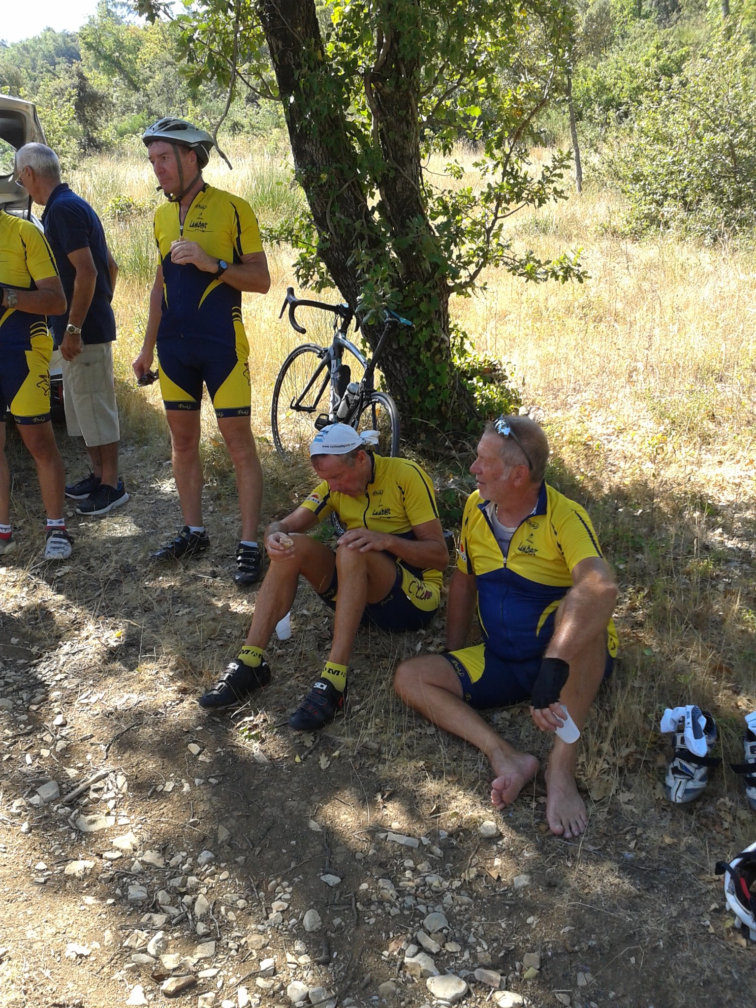 La descente sur Robion sera vite avalée terminant ce parcours de 93 km /1493 m de dénivelé à 21 de moyenne ,bon casses pates ces monts de vaucluse .Au retour arrèt café chez Bernard qui le matin nous avait laissé en chemin nous le remercions pour sa convivialité.