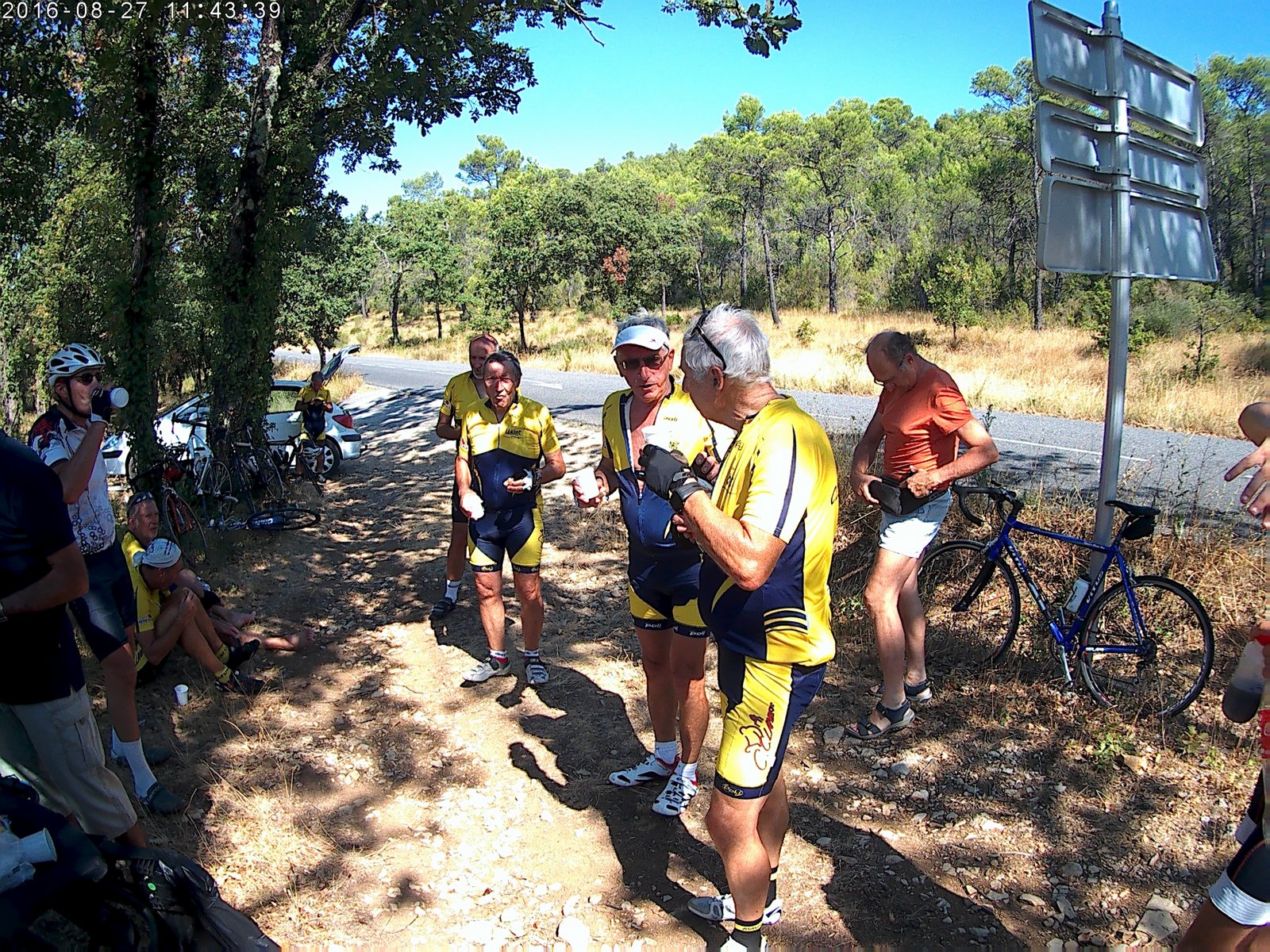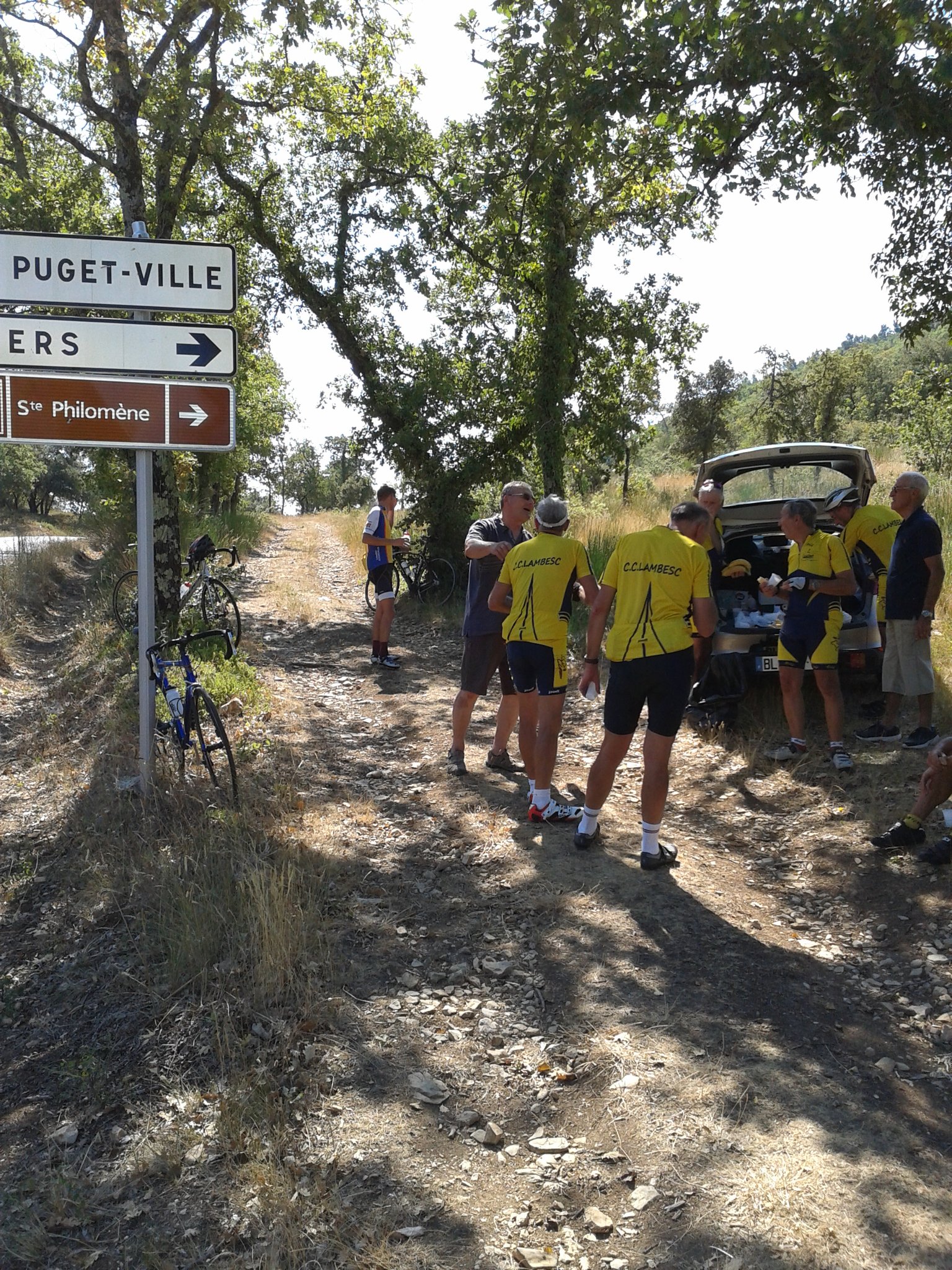 Entre temps Roland qui s’apprêtait, dès 6h30 à emprunter la route de Rognes fut victime d’un incident mécanique (pédale dévissée) Jean-Marie le dépanna (tant bien que mal) et c’est un Roland retardé qui nous rejoints peu après Le Puy Ste Réparade.