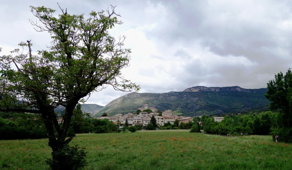Puis magnifique descente sur le col de macuègne et le beau village de Barret de lioure ( 70 habitants) perché sous la montagne du Buc au nord .