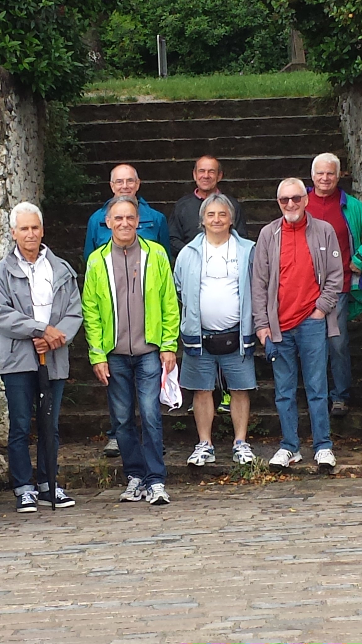Légère fraicheur au départ, nous rentrons vite dans une température agréable qui deviendra estivale vers midi, mais tout à fait supportable grâce à un petit vent qui ventile la troupe qui, de ce fait, file d’un bon rythme. Les 2 poses casse croûte arrivent toujours à bon escient et relancent nos sportifs ragaillardis.