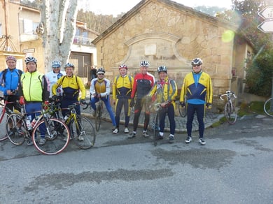 Au départ de Robion avec seulement 2 petit degrés à 9h30 Jm Chaves ,Jeannot , moi même et un invité de marque ;ancien président du CCL Gépeto qui nous accompagne En début de sortie vers la montée sur Saumane de Vaucluse, et peu avant la Roque/pernes ( 20km du départ ) redescendra dans la vallée .