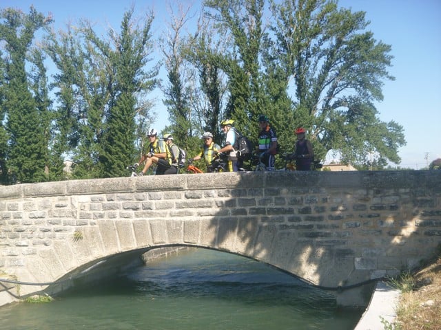 A l’aller, malgré le vent de contraire, nous avons roulé à vive allure en nous relayant tous les kilomètres environ. Résultat nous atteignons St Rémy de Provence à la moyenne de 29.1 km/h et Les Baux à 27.0. Le retour s’est effectué également à un train soutenu, tempéré par le fait que j’ai peiné pour les 35 derniers kilomètres car c’était seulement la 3ème sortie que j’effectuais après mon arrêt de 6 semaines. Merci à mes 2 compagnons de galère, qui eux n’ont pas connu la même défaillance. A ce rythme ils vont être affûtés pour l’Ardéchoise, c’est sûr. Arrivés à Lambesc nous avons rencontré Paul et Gilou sur leurs beaux VTT. Ils projetaient de rentrer via le canal, si j'ai bien compris.
