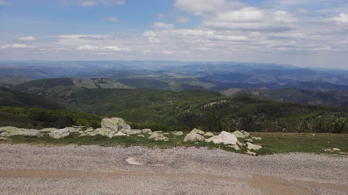 629m seulement mais 4 km d’ascension avec des pentes entre 10 et 12%...dur, dur). Ce mont est utilisé comme terrain d’envol pour les parapentistes. Enfin le point culminant du Gard, le Mont Aigoual (1.565m avec 28 km de montée entre 5 et 6%). Très fort vent au sommet. Ce site sert d’observatoire météo, avec ses grosses paraboles bruyantes au vent.