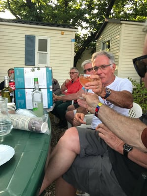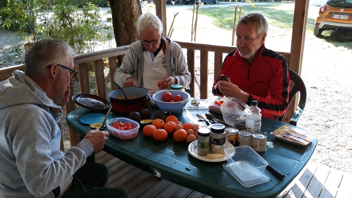 Nous étions 15 après l'accident de Cri, répartis en 8 mobil-homes au camping des Plans de Mialet- Restauration sur place le soir et pour le petit déjeuner.