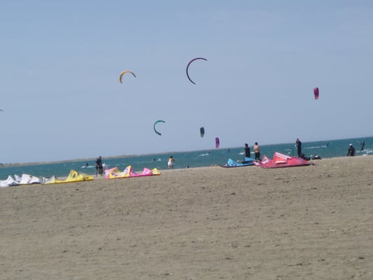 Baignade l'eau est fraîche --Beaucoup de Wind-surfs- C'est beau tout ces cerfs-volants.